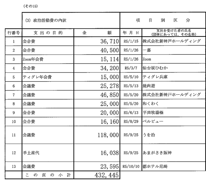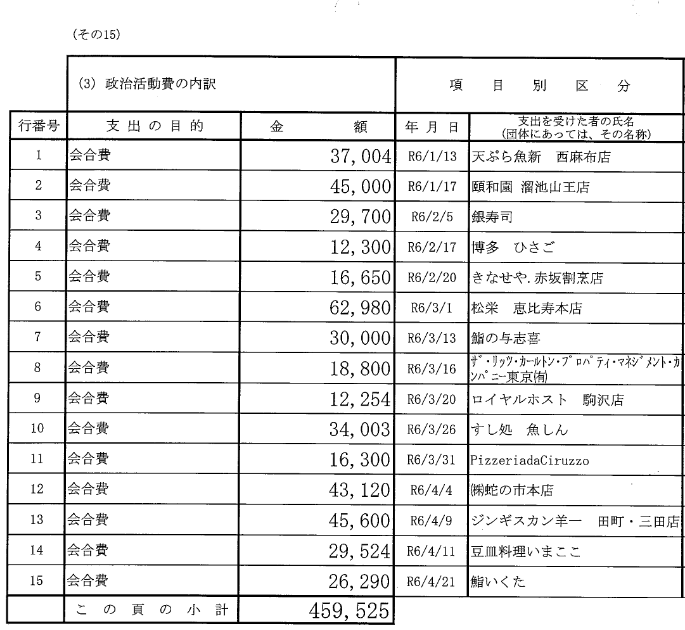 豪遊!公明・中野洋昌議員、高級寿司屋や焼肉店で会合を連発!令和5年は年間で約50万円も会合費、会議費、飲食代等で消費!!どこが庶民の党なの??